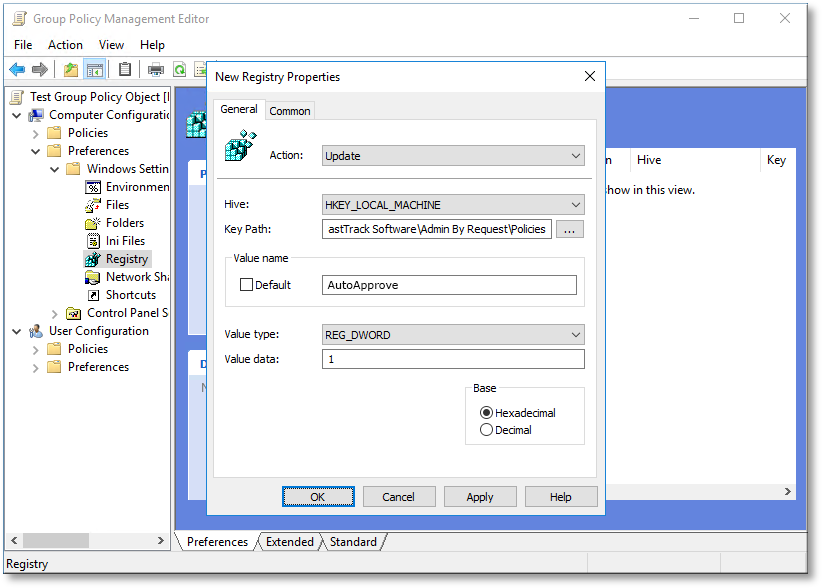 CopyHKEY_LOCAL_MACHINE\Software\FastTrack Software\Admin By Request\PoliciesKeyPath must be Software\FastTrack Software\Admin By Request\Policies