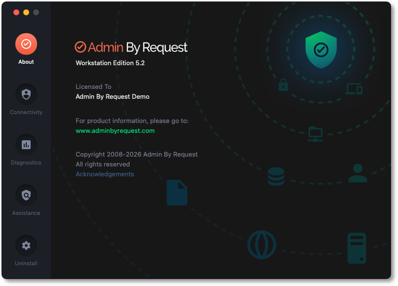 5. Back on the device on which you want to uninstall Admin By Request, go to the About  panel (i.e. select the Admin By Request icon from the top menu bar and click About Admin By Request).