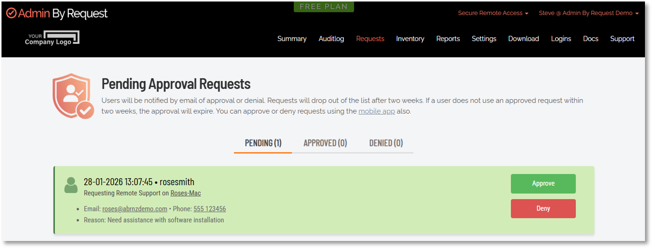 5. The IT administration team is notified via the Admin By Request portal that a new request for administrator access has arrived.