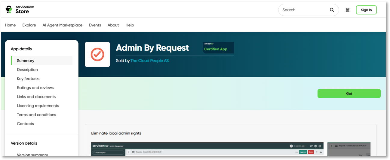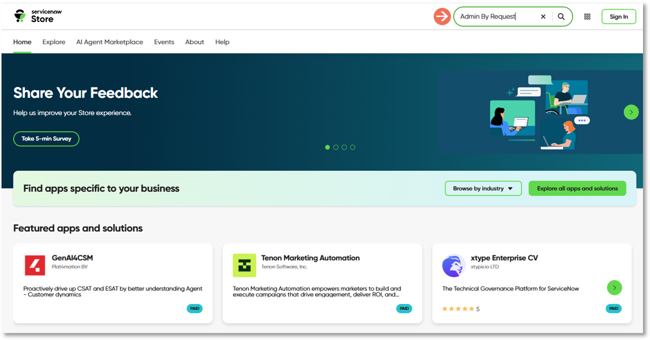 Go to the ServiceNow Store and use the search box to search for Admin By Request: