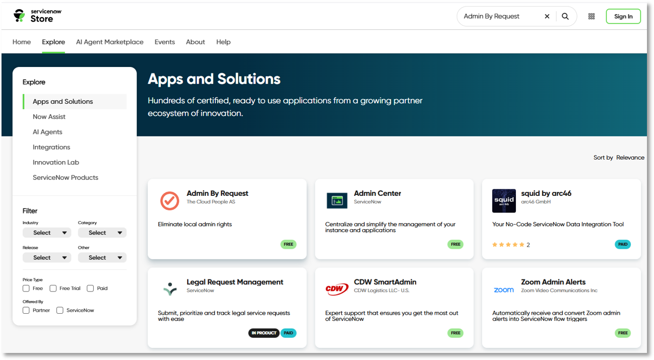 The integration described in this document is made possible through a connection between ServiceNow and Admin By Request via a custom-built ServiceNow application. The first task involves installing the app in ServiceNow.