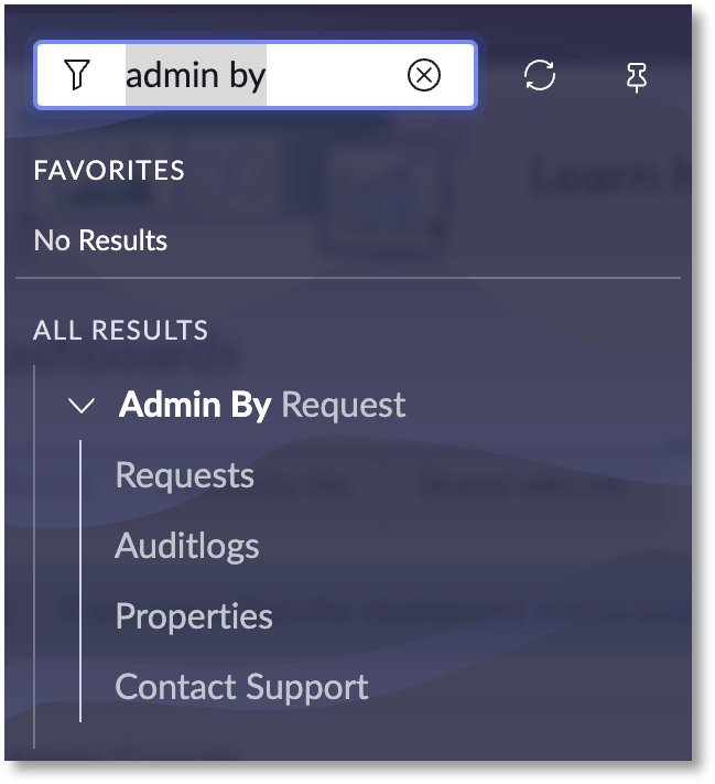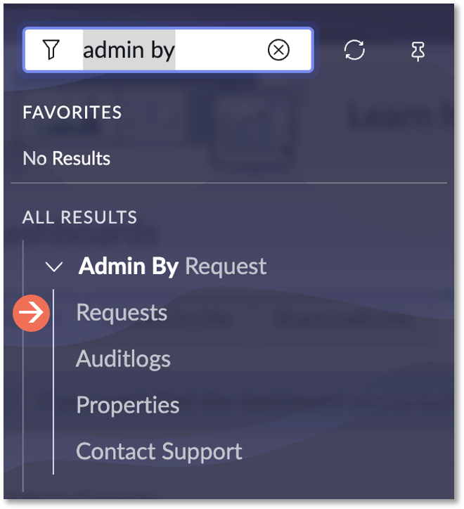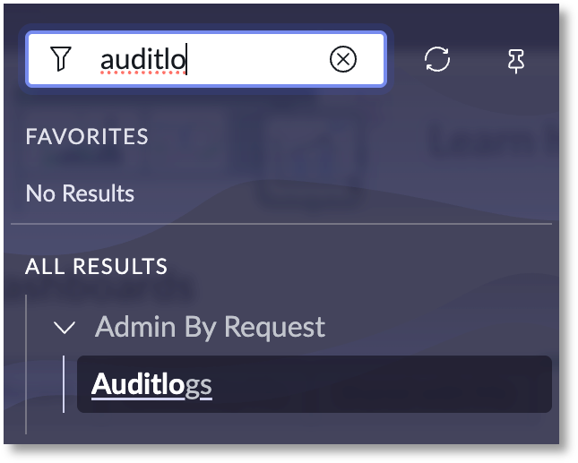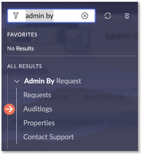 Using the Filter Navigator search box, locate the Admin By Request app and select Auditlogs from the sub-menu: