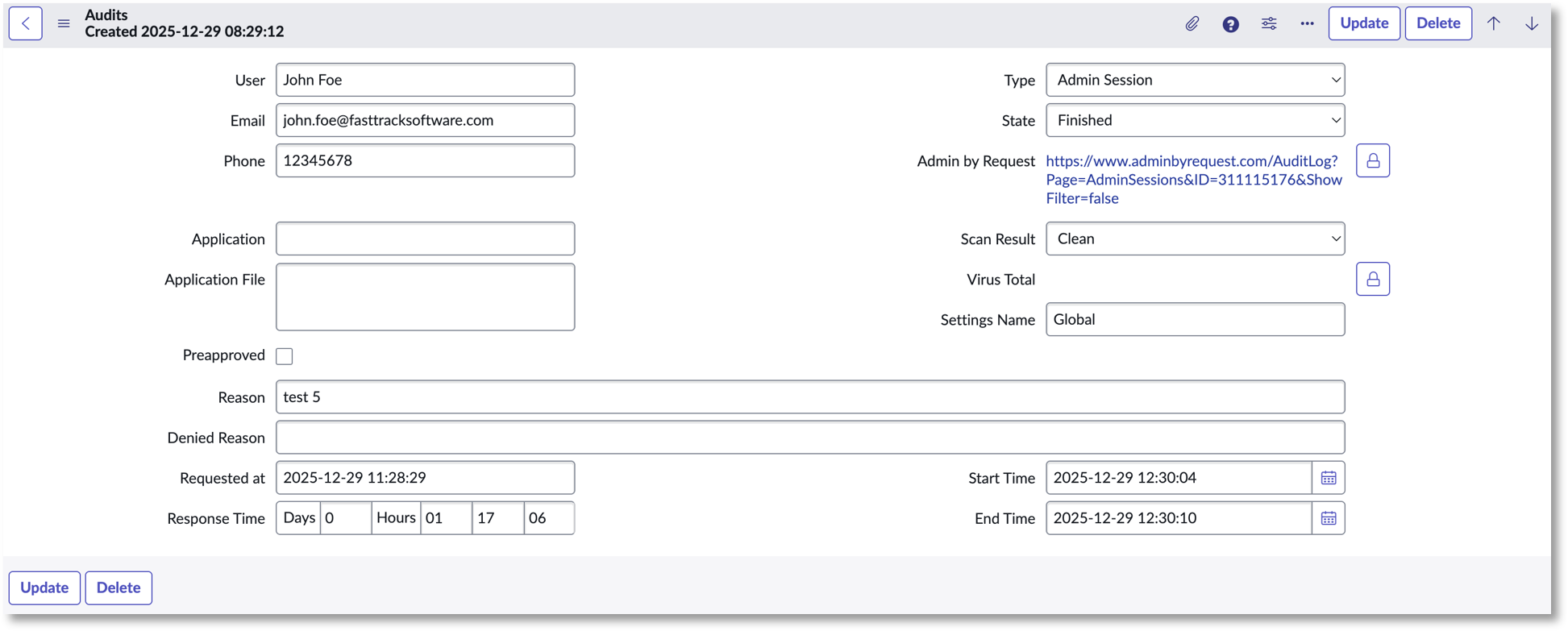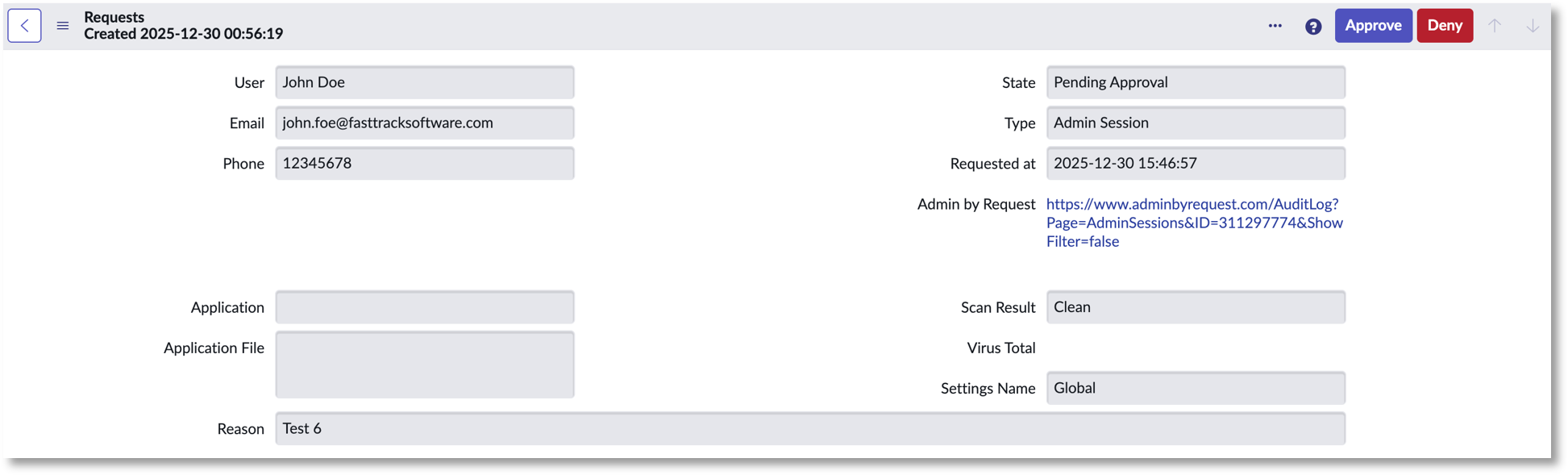 The user who made the request will receive an email from Admin By Request that their request has been approved. When the request is complete, the details will be available in the Auditlog in ServiceNow.